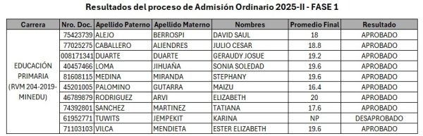 RESULTADO ADMISIÓN ORDINARIA 2025-II